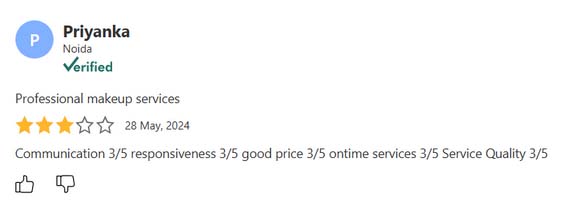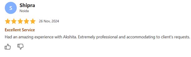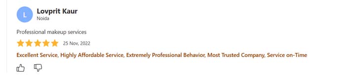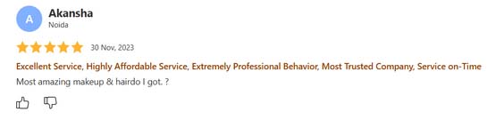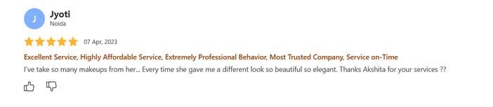 Excellent service, highly affordable service, extremely professional behavior, most trusted company, service on time i'have take so many makeups form her.... every time she gave me a different look so beautiful so elegant. Thanks Akshita for your services.